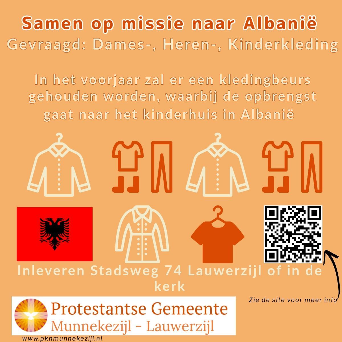 In het voorjaar staat een kledingbeurs gepland voor 2de hands kleding. Mooie, goede heren-, dames- en kinderkleding is van harte welkom en kan gebracht worden naar Stadsweg 74 in Lauwerzijl of naar de PKN kerk in Munnekezijl tijdens de openingstijden.